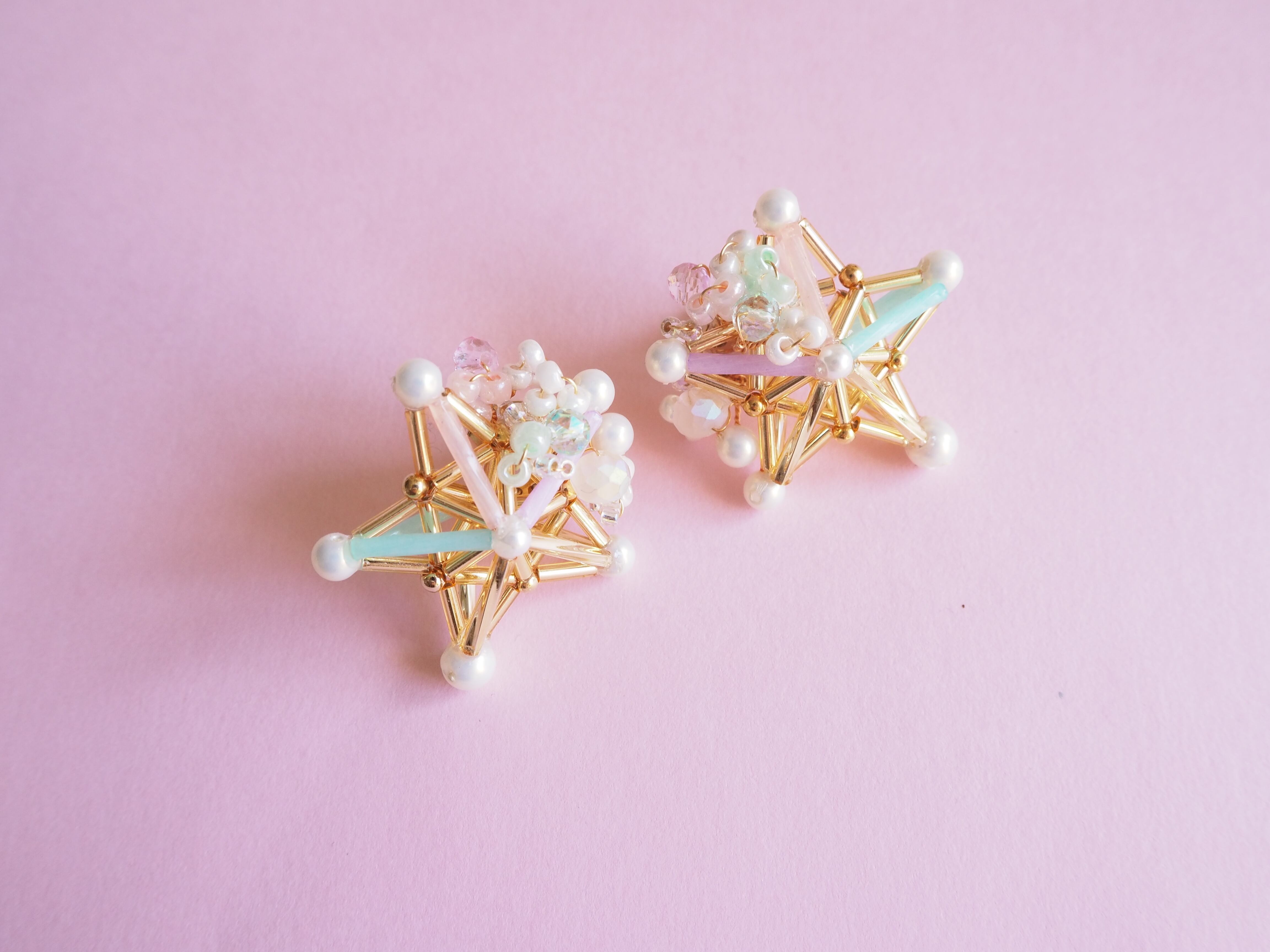 starピアス/イヤリング(green×pink)